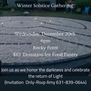 Please rsvp if you are planning on attending our annual Winter Solstice Celebration. Bring a snack to share if you like. , Dress appropriately for our labrynth walk and fire circle and get ready for the return of the light!!